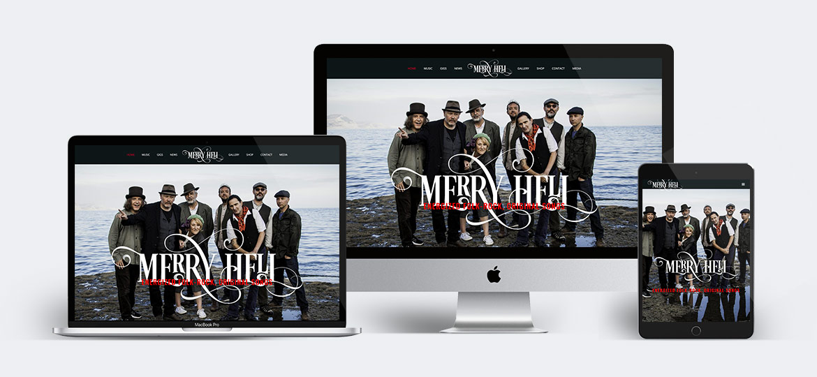 Being a huge fan of my hometown band The Tansads in the 90’s (for whom I designed my first ever website!) I was excited to hear that after a sold out weekend of reunion gigs the former members of the Tansads were again to start producing music. In 2011 Merry Hell was born. Since then I have designed and built their website, designed album, single, dvd covers, posters, press adverts… whatever was needed.